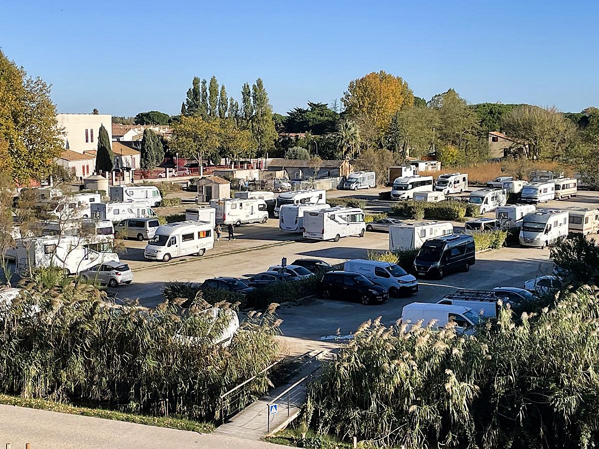 Parking P4 : Aire de services et de repos à Aigues-Mortes. Ouverture toute l’année. 24h/24h.