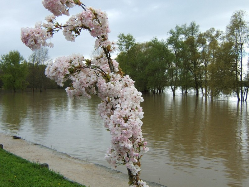 La Charité et la découverte d’une Loire dont le flot impétueux et rapide affleure presque les berges. Peu habitués à voir des fleuves en crue, ça nous fait grosse impression. Des arbres semblent pousser au milieu de l’eau, là où normalement s’étirent des jardins de promenade. Des troncs, des branches sont charriés, des objets non identifiés en tout genre, l’eau est sale, jaunâtre. Les arches du pont ont l’air de s’être abaissées plus près de la surface. Cette vision éveille en nous un sentiment de prudence et de méfiance qu’il ne faudra pas oublier quand viendra le moment de chercher un coin sympa pour passer la nuit.