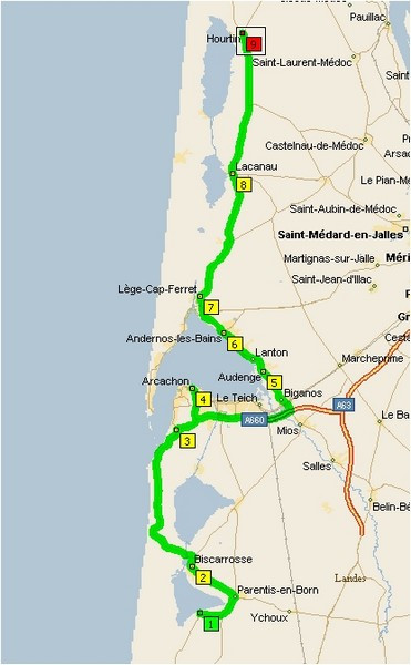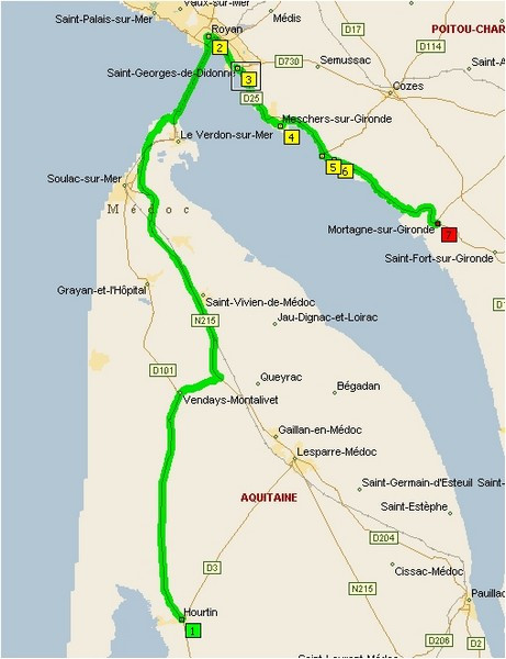 Après une bonne nuit très calme, sans pluie, et après avoir récupéré de nos efforts de la veille, nous reprenons la route en direction de la pointe de Grave.