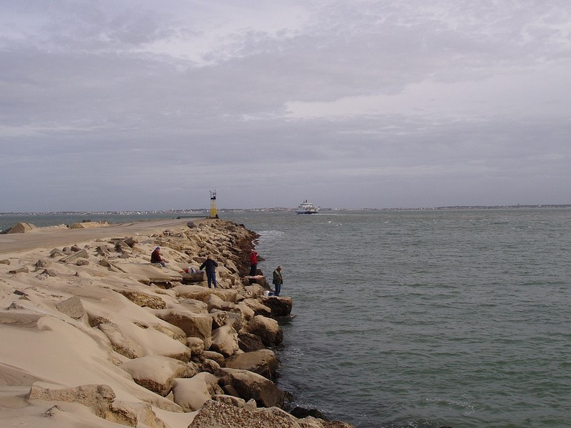 Sur le parking de la jetée de la Pointe de Grave, le vent redouble de violence un petit tour à pied s’impose. Au large on distingue le phare de Cordouan, le plus ancien de France. L’estuaire de la Gironde est devant nous, qui s’ouvre majestueusement mêlant ses eaux avec celles de l’Atlantique.
