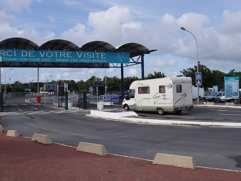 Il faut se mettre dans la file d’attente en vue de l’embarquement. L’attente est de courte durée. Passage à la caisse (42 € pour un camping-car avec ses deux passagers) et la barrière se lève. Quelques minutes après nous voilà à bord, à midi l’ancre est levée. De suite, on est balancé par une houle formée. Sur la plage avant, l’effet conjugué du vent et de la vitesse du navire ont vite fait de contraindre tout le monde à trouver refuge dans une salle du pont supérieur. Confortablement calés dans un fauteuil, nous avons tout loisir de découvrir ce vaste estuaire.