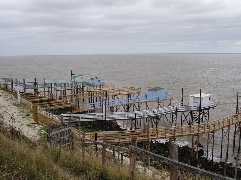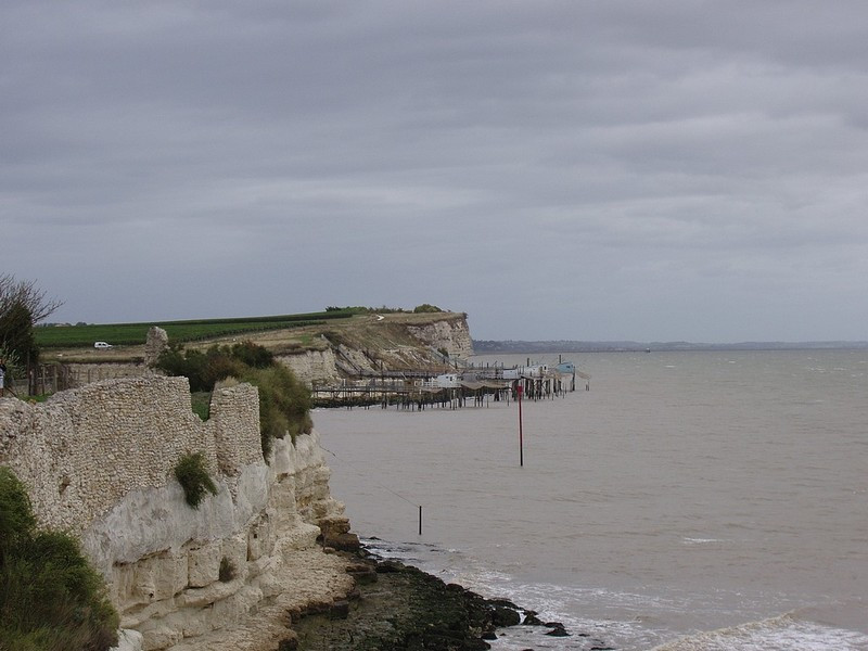 Du port, la route qui longe la baie conduit au chemin de la falaise blanche du Caillaud, en bordure duquel sont installés de nombreux carrelets.