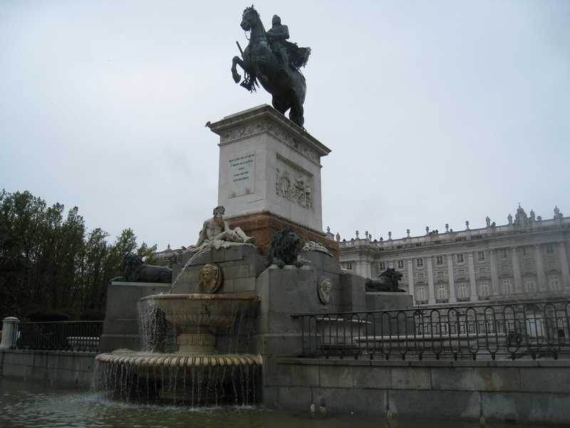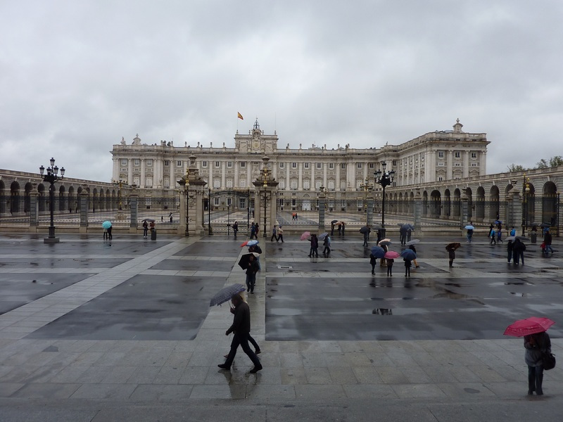 Un peu plus loin, place Orient, trône le Palacio real (Palais royal), qui fut la résidence des monarques durant plusieurs siècles. Nous y parvenons sous une petite pluie et comprenons tout de suite que notre visite devra être reportée : une file d’attente s’étire sur plusieurs centaines de mètres et au vu de sa très lente progression, il est évident qu’il nous faudrait beaucoup trop de temps avant d’accéder au guichet.