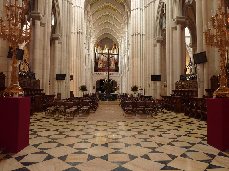 Ce bel édifice, de construction récente puisqu’il fut consacré par le pape Jean-Paul II le 15 juin 1993, est le siège épiscopal du diocèse de Madrid. S’y côtoient plusieurs styles : néoclassique à l’extérieur, néogothique à l’intérieur et néoroman dans la crypte. Cependant cent dix ans ont été nécessaires à sa construction. En 1999 y a été inauguré un grand orgue doté de 4 claviers et 70 jeux, réalisé par le facteur Gerhard Grenzing.