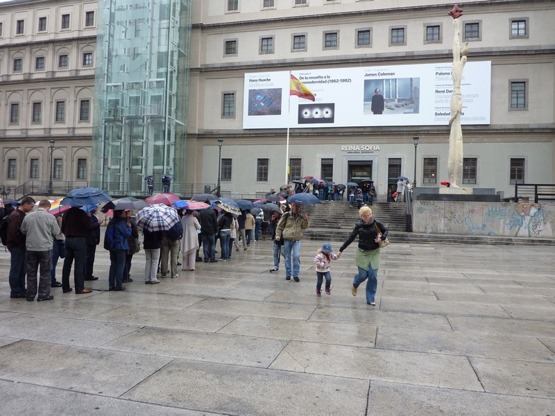 Pour terminer la matinée nous nous rendons au Musée national Reina Sofia, au bout de la rue Santa Isabel. Il y a là aussi une longue file d’attente. Nous apprenons avec plaisir que l’entrée est gratuite le samedi après-midi et décidons en conséquence d’y revenir à ce moment-là. Après une petite collation dans le quartier nous y revoilà donc et il est finalement beaucoup plus aisé d’y accéder que le matin.