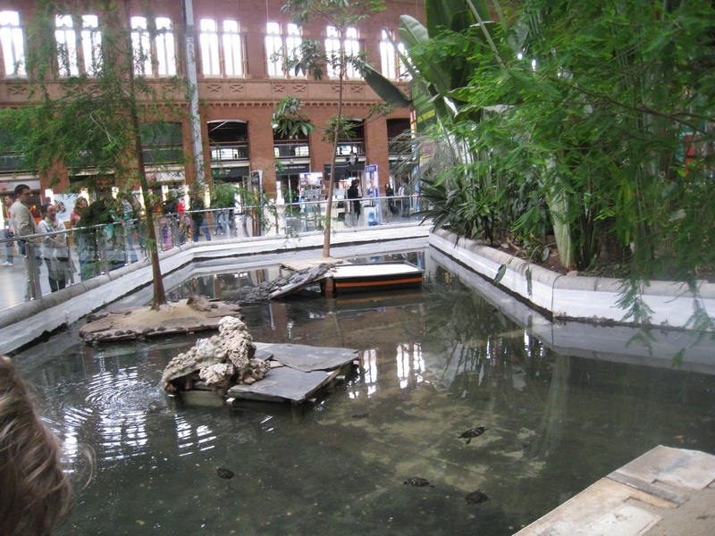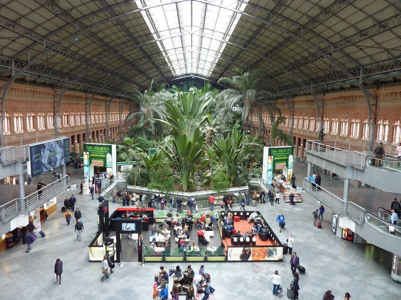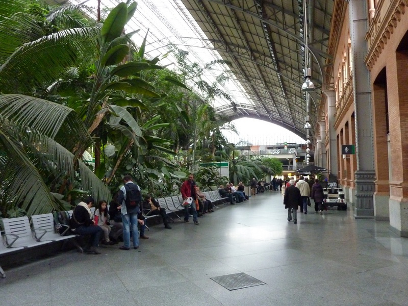 Nous poursuivons par la visite de la gare d’Atocha toute proche, la plus grande d’Espagne. Son architecture est un chef-d’œuvre de la fin du XIXe siècle. En 1992 un nouveau terminal y fut créé et la partie ancienne transformée en serre tropicale. De nombreux cafés et restaurants y ont trouvé place, ce qui rend le lieu fort agréable.