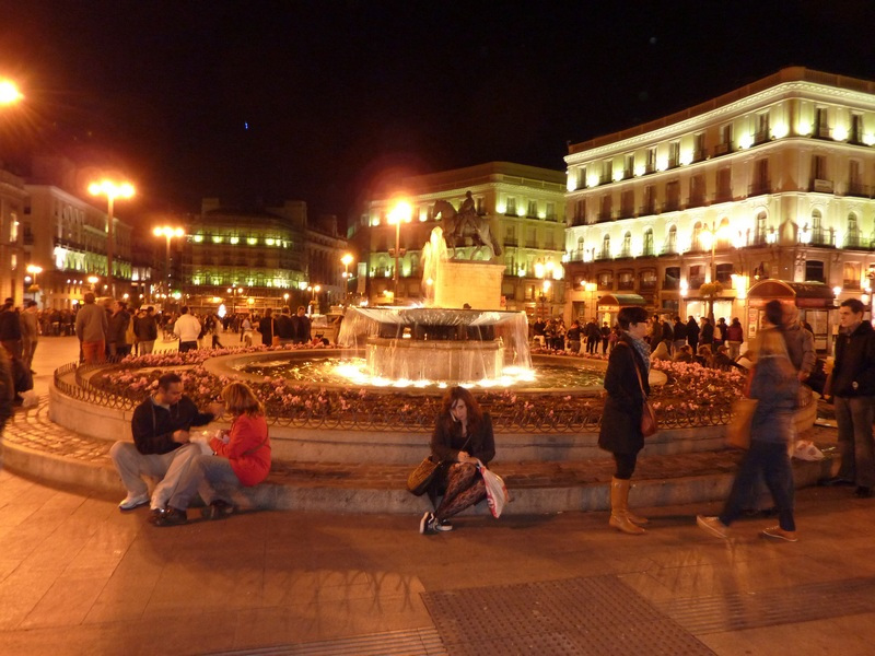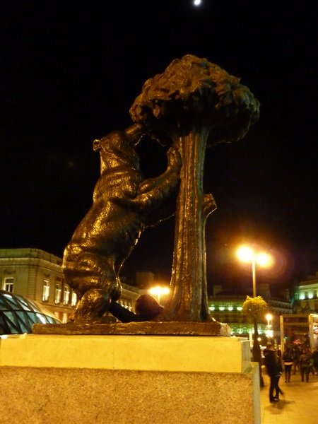 Non loin de là, la Puerta del Sol, place semi-circulaire où se trouve le « kilomètre zéro » du système radial des routes espagnoles. On y trouve la Maison Royale de Correos et la statue de l’Ours et de l’Arbousier, symboles de la ville de Madrid.